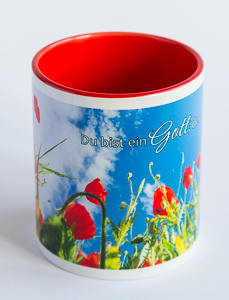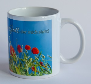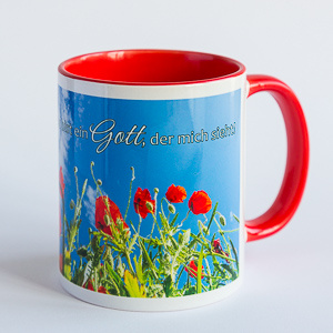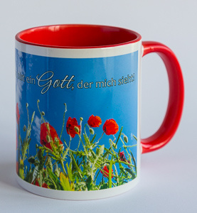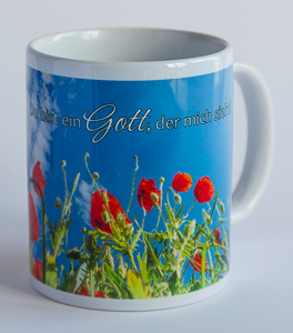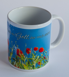Die Fototasse ist in klassischer Becherform und hat außen Motiv und Vers der Jahreslosung aufgedruckt. Sie können zwischen 2 Farben wählen.
