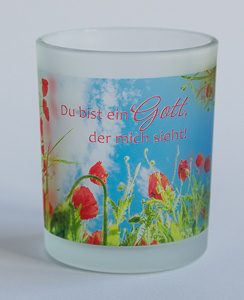Mit dem Blick aus dem Mohnfeld und dem Vers der Jahreslosung "Du bist ein Gott, der mich sieht!"