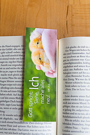 Format ca. 5x15cmmit Kükenmotiv und Bibelvers zur Jahreslosung 2026