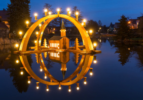 Weihnachtliche Klappkarte "Schwimmender Lichterbogen" passend zum Kalender