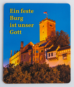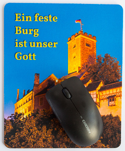Das Motiv der Wartburg bei Nacht mit dem Vers von Martin Luther "Ein feste Burg ist unser Gott" auf Ihrem Schreibtisch. Das praktische und strapazierfähige Mousepad ist sehr flexibel und kann unkompliziert mitgenommen werden.
